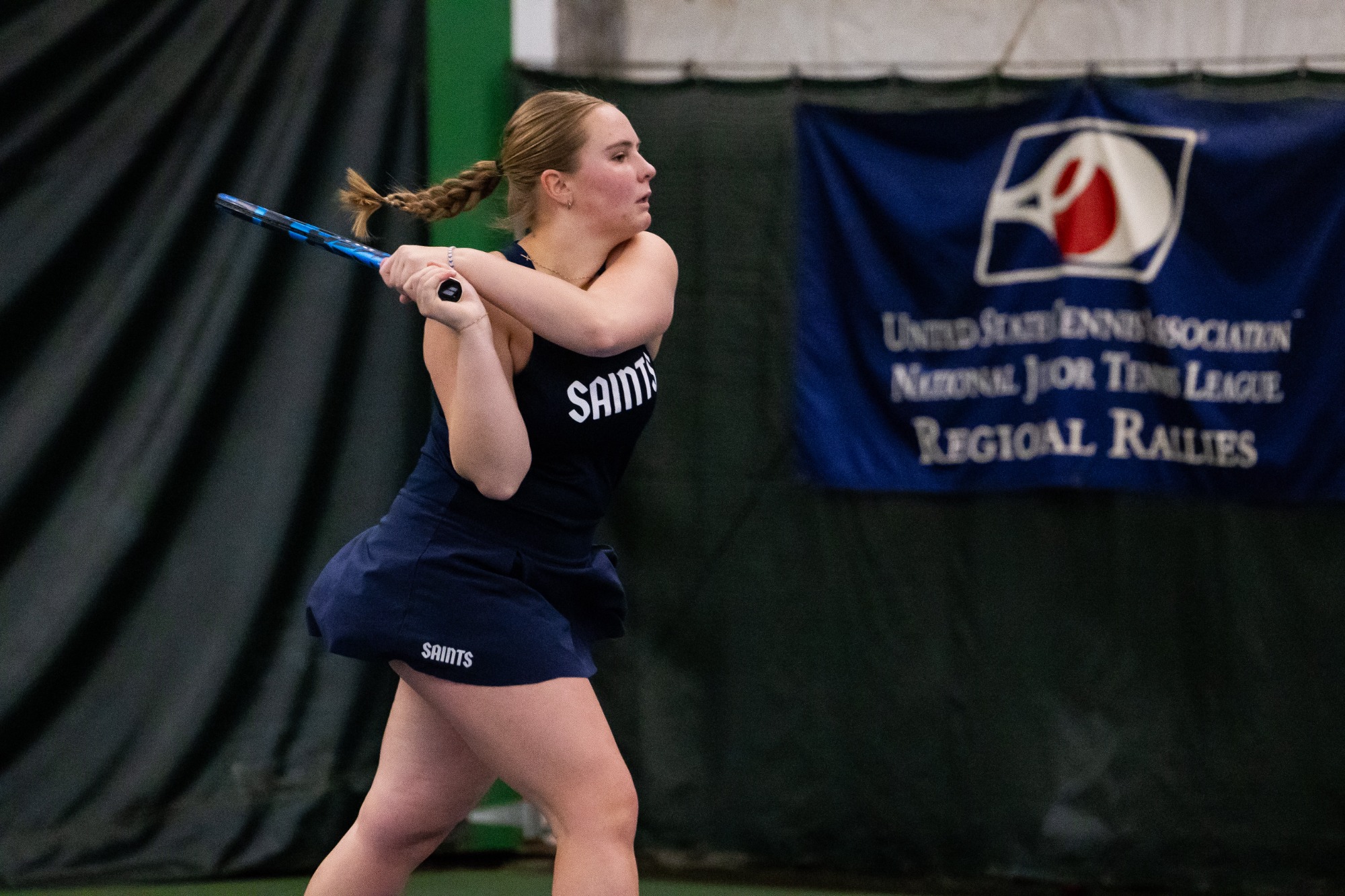 DULUTH, Minn. (csssaints.com) – The St. Scholastica women's tennis team lost its early match against Gustavus Adolphus College on Saturday morning by a score of 8-1, but turned around to swept North Central University 9-0 later in the day.